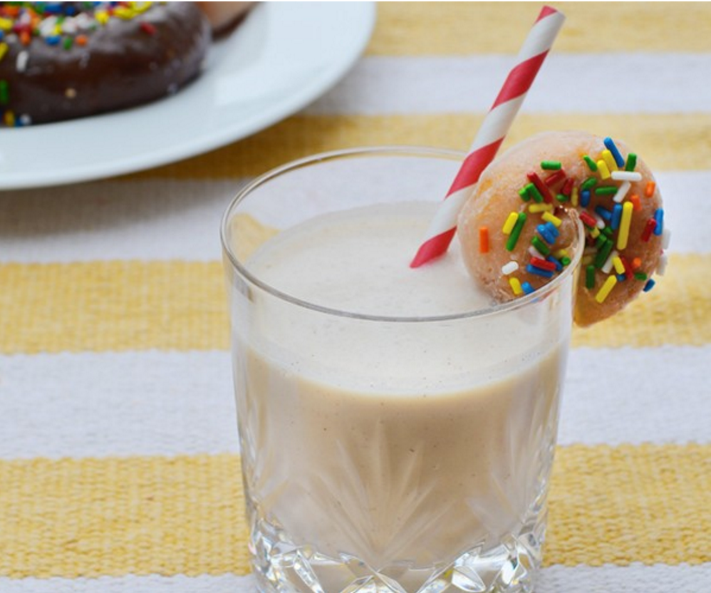 Pour your trifecta of vodkas into a shaker. Add your brown sugar and mix with a spoon until well-dissolved. Add your cream and cinnamon, some ice, and shake it like you mean it. Pour chilled, mixed cocktail into your glass through a strainer. Add the Dr. P and stir. Garnish, and drink your donut. Then also eat it. Cover all your bases.