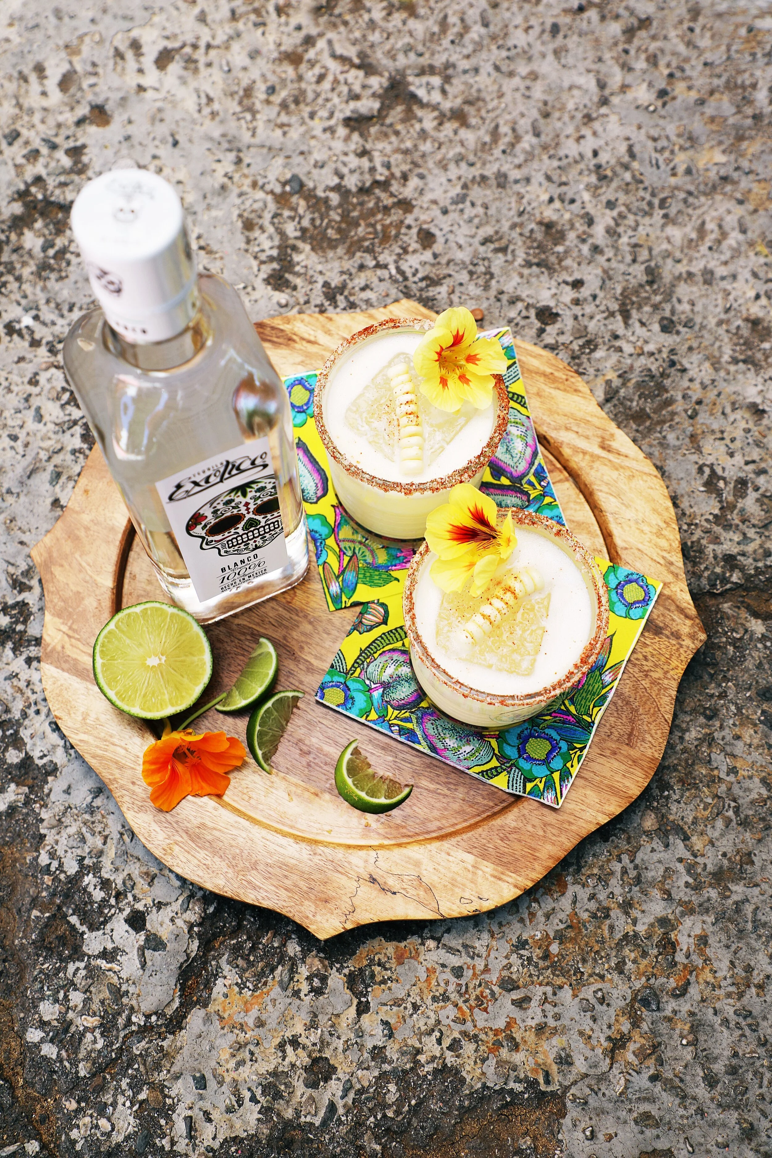 As a nod to the Mexican heritage of Exotico’s multi-generational family-distilled tequila I thought I’d do a pretty little cocktail spin on Elote, aka: delicious, delicious Mexican Street Corn. In fact…I’m going to give you TWO variations because I love you.