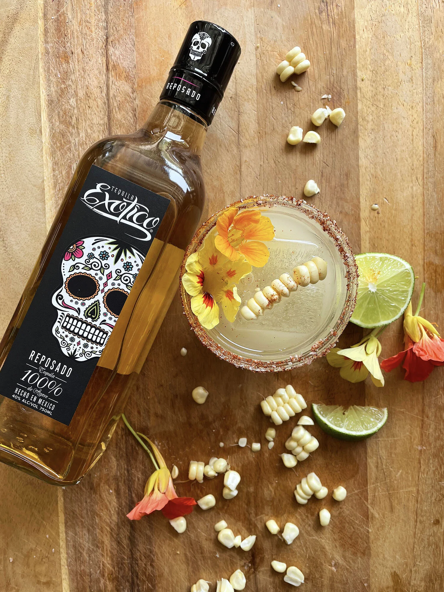 When Exotico Tequila asked me to create a fresh, summery cocktail just in time for Memorial Day Weekend, I was already daydreaming about actually getting to have a REAL BBQ this year with REAL FRIENDS, IN person—WHAT?!!! I don’t even know if I remember how to people, but sign me up! I digress. My point: barbecuing. Which makes me think of grilled corn, which is one of my very most favorite BBQ foods. And so I started thinking…Corn Margarita? WHY NOT.